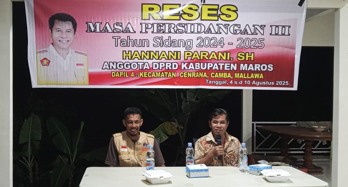 MAROS, Kamera Dprd – Anggota Dewan Perwakilan Rakyat Daerah (DPRD) Kabupaten Maros dari Partai Gerindra, Hannani Parani, menghabiskan sesi resesnya di Kecamatan Mallawa dengan menampung ratusan keluhan warga mengenai kondisi jalan, ancaman longsor, serta tata ruang pasar tradisional.