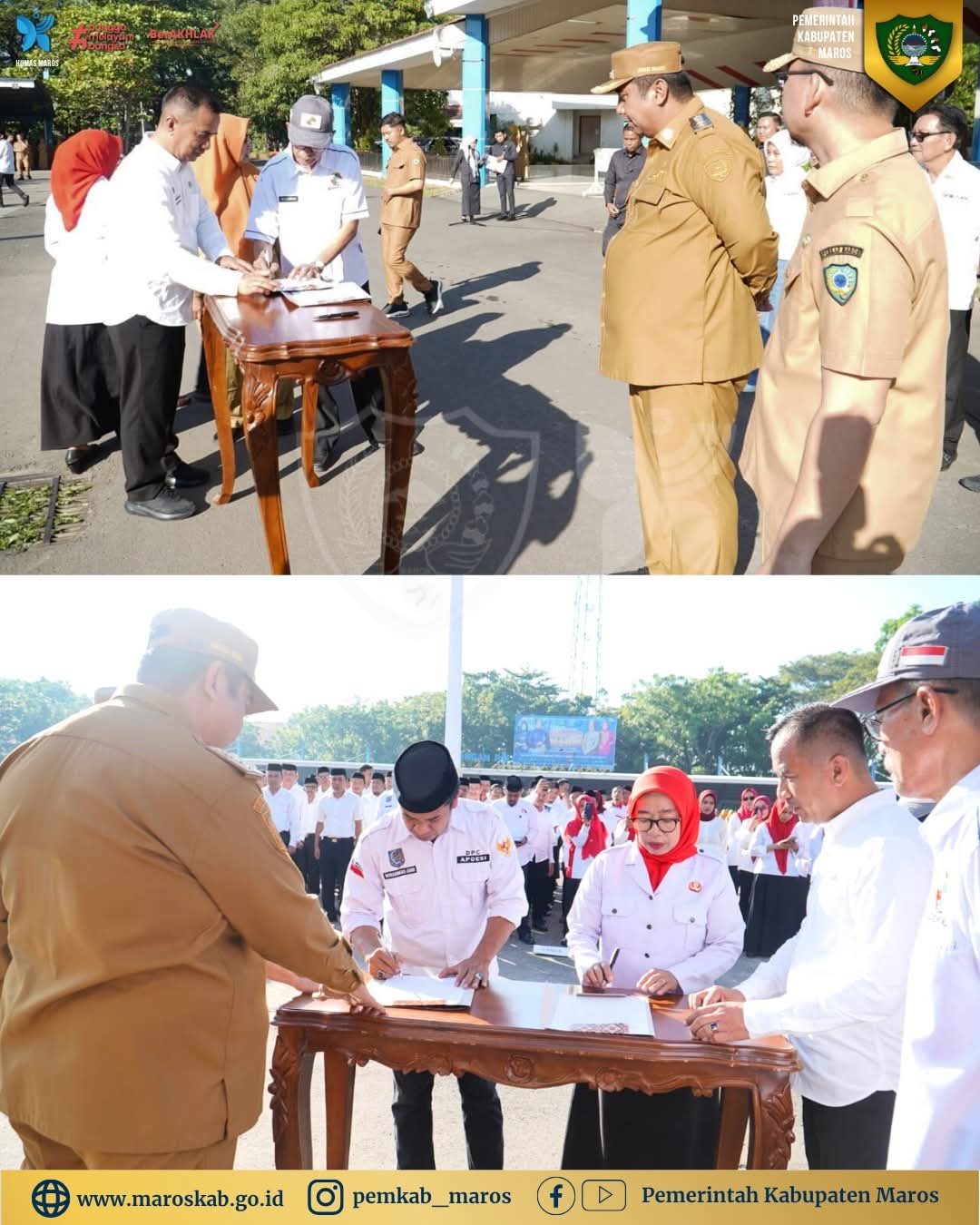 MarosKamera Pemerintah – Kabupaten Maros kembali menunjukkan komitmennya dalam mendukung program strategis nasional. Bupati Maros, Dr. H. A. S Chaidir Syam, S.IP., MH, didampingi Sekretaris Daerah Kabupaten Maros, Andi Davied Syamsuddin, S.STP., M.Si, secara resmi melantik dan mengambil sumpah jabatan Pengurus dan Pengawas Koperasi Desa Merah Putih Kabupaten Maros Tahun 2025. Acara penting ini dilaksanakan di sela pelaksanaan Apel Penghormatan Bendera Lingkup Pemerintah Kabupaten Maros di Lapangan Upacara Pallantikang, Senin (21/07/2025).