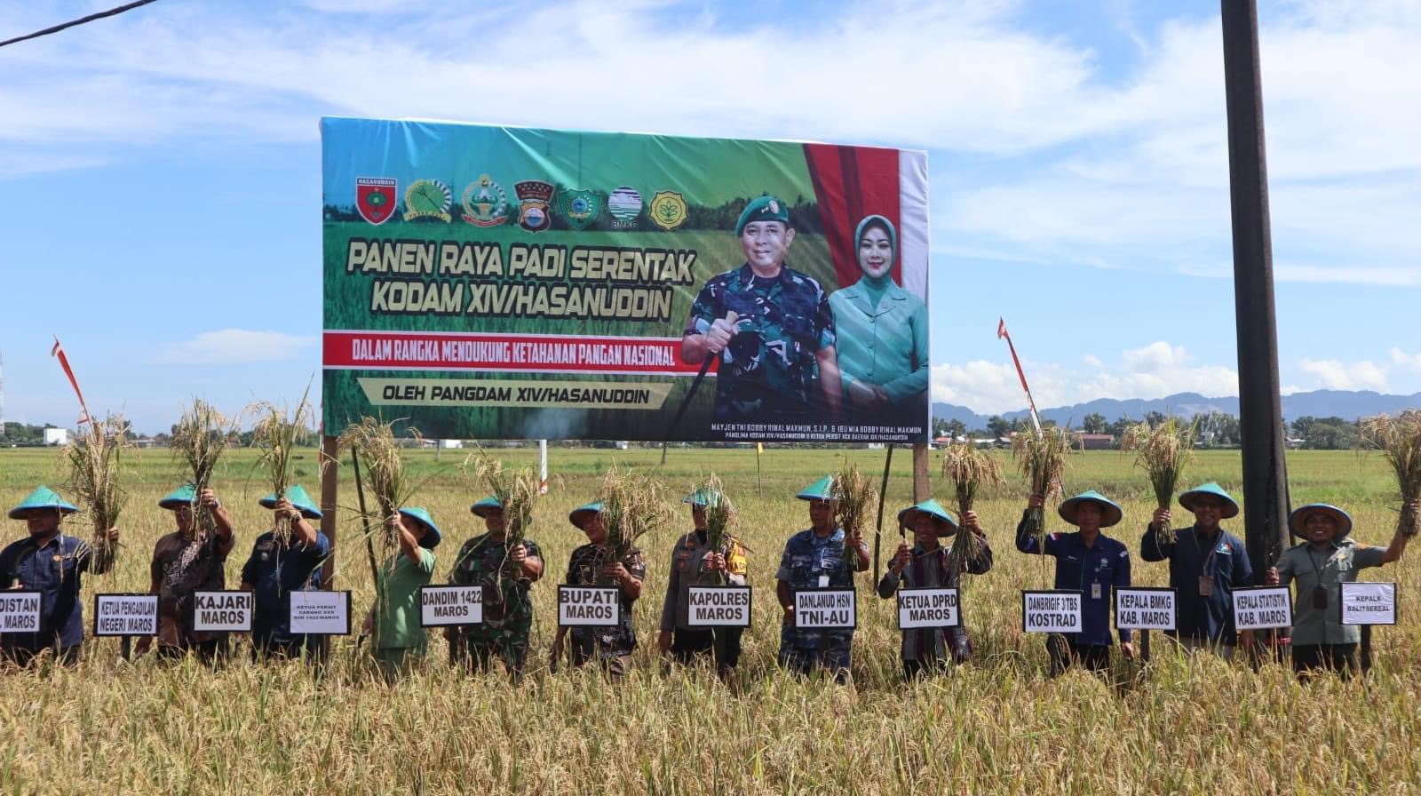 Kameraliputan.com — Maros — Dalam rangka mendukung ketahanan pangan nasional Kodam XIV Hasanuddin menggelar panen raya serentak.