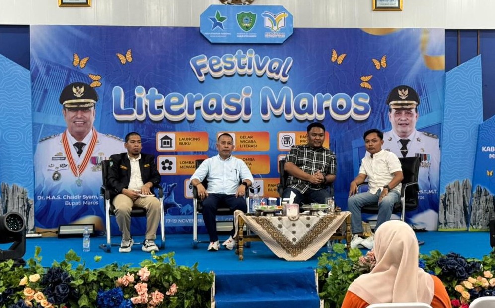 MAROS, Kameraliputan.com – Bumi Maros bergemuruh, bukan oleh deru mesin, melainkan oleh riuh rendah diskusi dan semangat dahaga akan ilmu. Di hari kedua Festival Literasi Kabupaten Maros, yang digagas penuh semangat oleh Dinas Perpustakaan dan Kearsipan Maros, suasana meriah seolah menjadi melodi pengiring bagi sebuah perayaan akbar: perayaan membaca, berdiskusi, dan berkreasi.