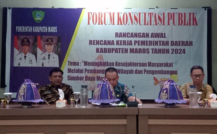 Konsultasi publik kali ini bertemakan “meningkatkan kesejahteraan masyarakat melalui pembangunan wilayah dan pembangunan sumber daya manusia” dilaksanakan digedung baruga, kompleks kantor Bupati Maros.