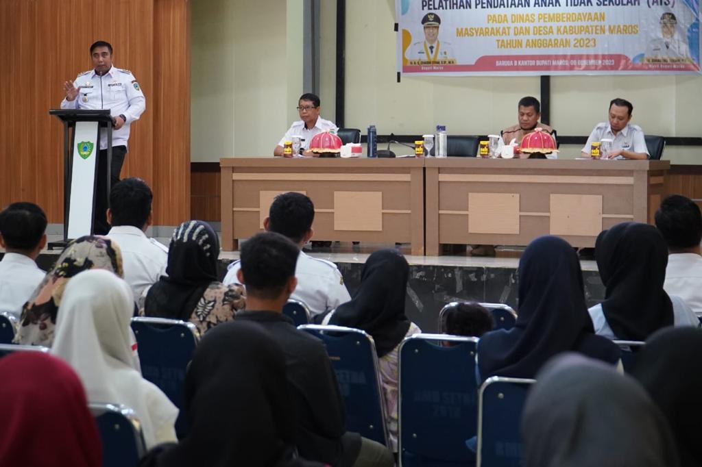Kameraliputan.com — MAROS — Pemerintah Daerah Kabupaten Maros melalui Dinas Pemberdayaan Masyarakat dan Desa Kabupaten Maros menggelar Pelatihan Pendataan Anak Tidak Sekolah (ATS) bagi aparatur desa se Kabupaten Maros.