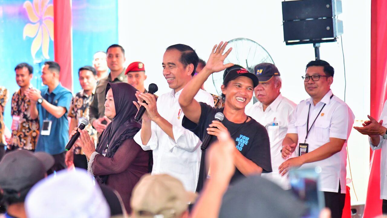 Maros. Kameraliputan.com.,- residen Joko Widodo menyerahkan bantuan pangan cadangan beras pemerintah kepada keluarga penerima manfaat (KPM) di Gudang Bulog Batangase, Kabupaten Maros, Provinsi Sulawesi Selatan, pada Kamis, 22 Februari 2024.