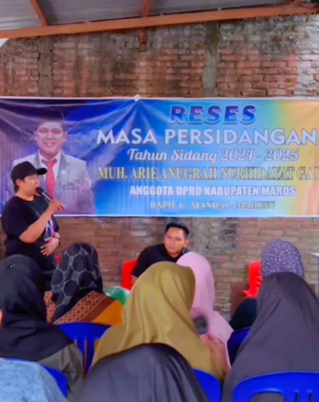 Maros. Kameraliputan.com – Anggota Komisi II DPRD Kab.Maros Dalam Hal ini Muh Arie Anugrah Hidayat Gaus Melaksanakan Reses Perdana Tahun 2024-2025 Yang Bertempat Di Perumahan Griya Maros Indah Tamarampu, Kelurahan Bontoa, Kecamatan Mandai.,Selasa (19/11/2024).