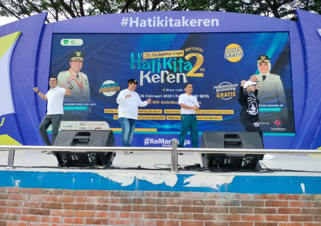 Maros – Dinas Pariwisata, Pemuda dan Olahraga (Disparpora) luncurkan Calender of Event Kabupaten Maros. Peluncuran Calender of event ini berlangsung saat usai melaksanakan jalan santai refleksi 2 tahun kepemimpinan Bupati Maros H.A.S. Chaidir Syam, S.IP., MH dan Wakil Bupati Hj. Suhartina Bohari, SE., Ahad (26/02/2023) di alun-alun Bank SulSelBar Maros. Tercatat sebanyak 63 event yang akan diselenggarakan pada tahun ini.