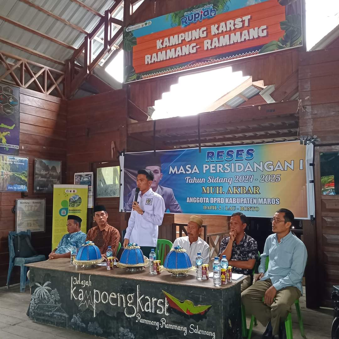 Maros. Kameraliputan.com – Anggota DPRD Kab.Maros Dari Komisi Dua, Muh.Akbar Melaksanakan Reses Masa Persidangan I Tahun Sidang 2024-2025 Yang Bertempat Di Dermaga Dua Rammang-rammang, Desa Salenrang, Kec.Bontoa.,Kamis (21/11/2024).