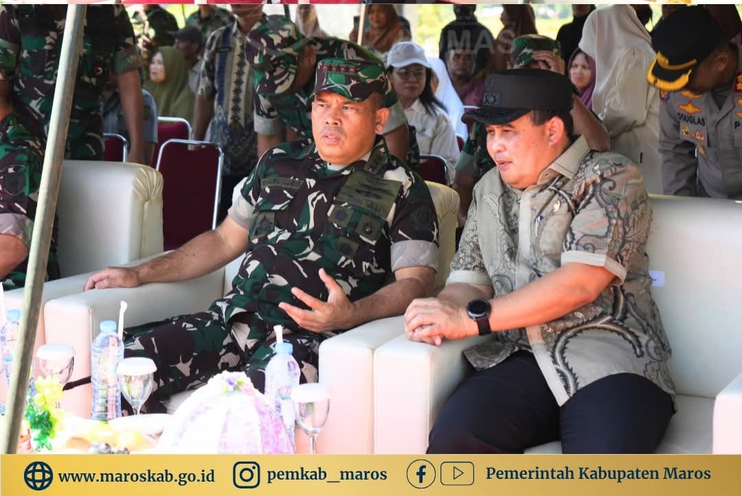 Kegiatan panen raya ini juga turut dihadiri oleh Ketua IKKT Pragati Wira Anggini Cabang BS lII Kogabwilhan ll, Ny. Sondang Khairil Lubis, menandakan dukungan penuh dari seluruh elemen. Selain itu, tampak hadir Kapolres Maros AKBP Douglas Mahendrajaya, S.H., S.I.K., M.I.K., M. Tr. Opsla, Kepala Dinas Pertanian dan Ketahanan Pangan Kabupaten Maros FADLI, S.STP., M.Si, beserta jajaran unsur TNI/POLRI lainnya.